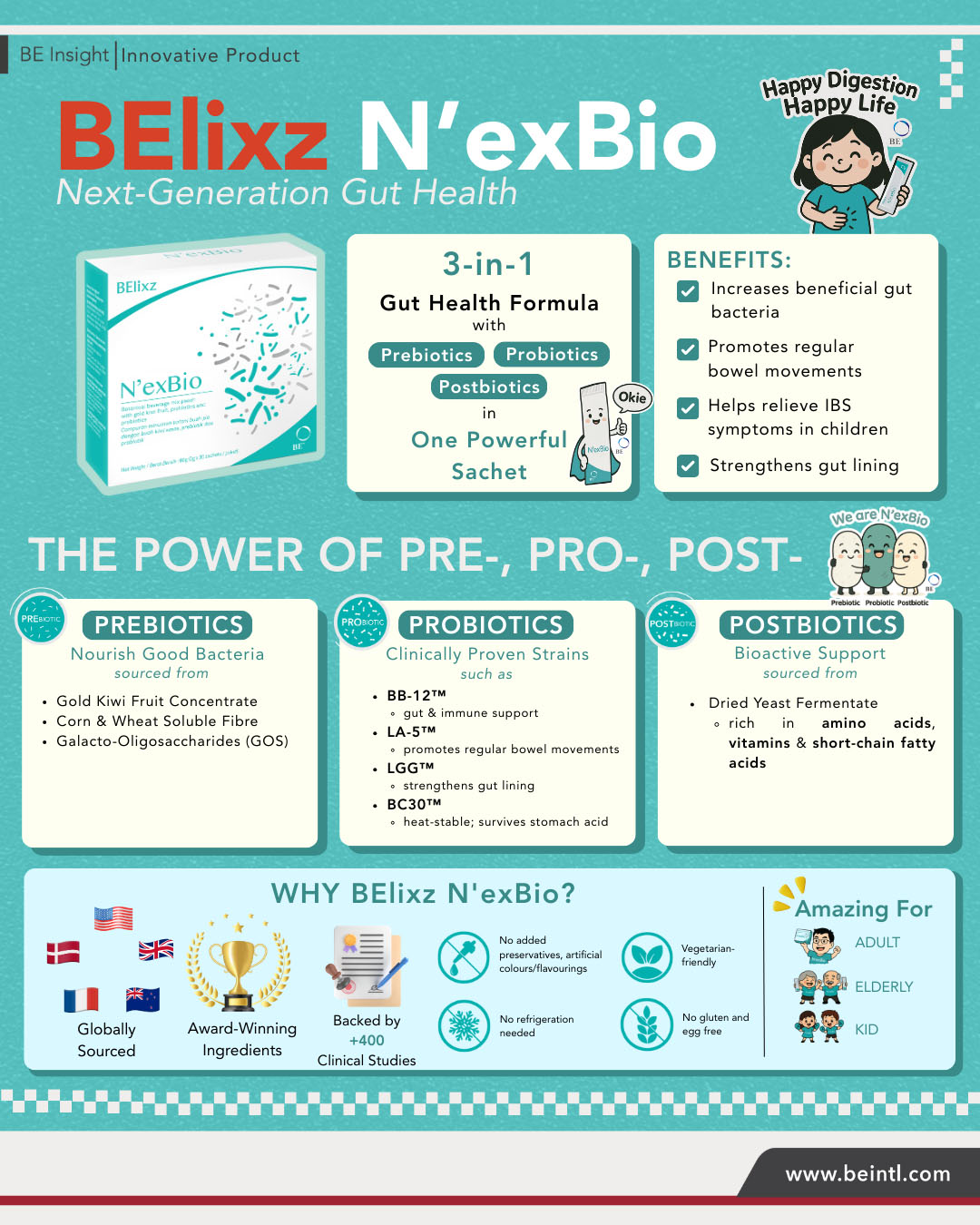 Say hello to BEliXZ N’exBio — a next-generation formula combining prebiotics, probiotics, and postbiotics to support digestive balance, regularity, and gut defence.